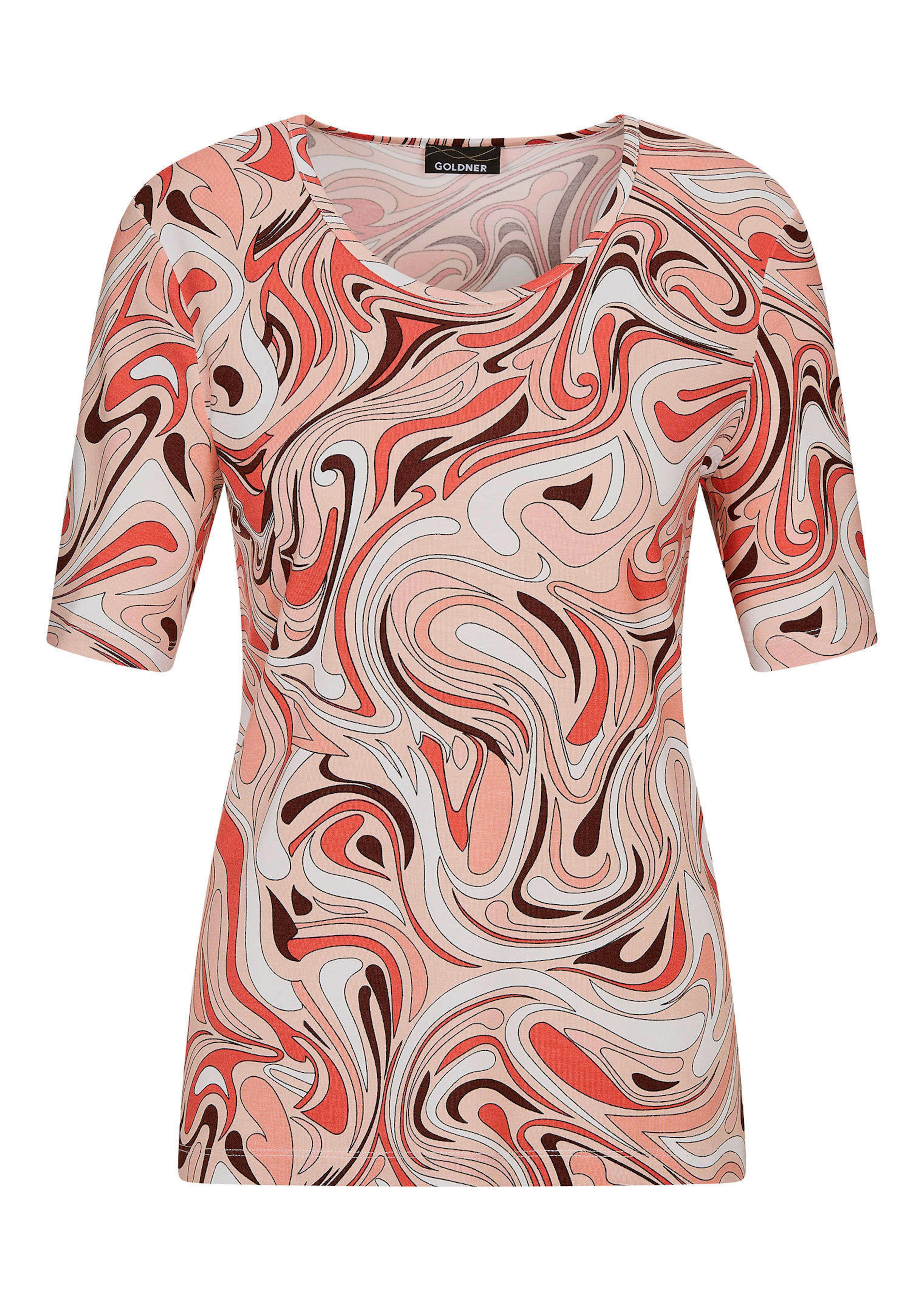T-shirt léger en jersey de coton agréable à porter. Un modèle agrémenté d’un splendide imprimé intégral qui sème la bonne humeur d’emblée. Facile à combiner. Idéal par beau temps, avec manches 3/4 et encolure arrondie. Coupe près du corps. Longueur env. 66 cm en 46, env. 62 cm en 23.