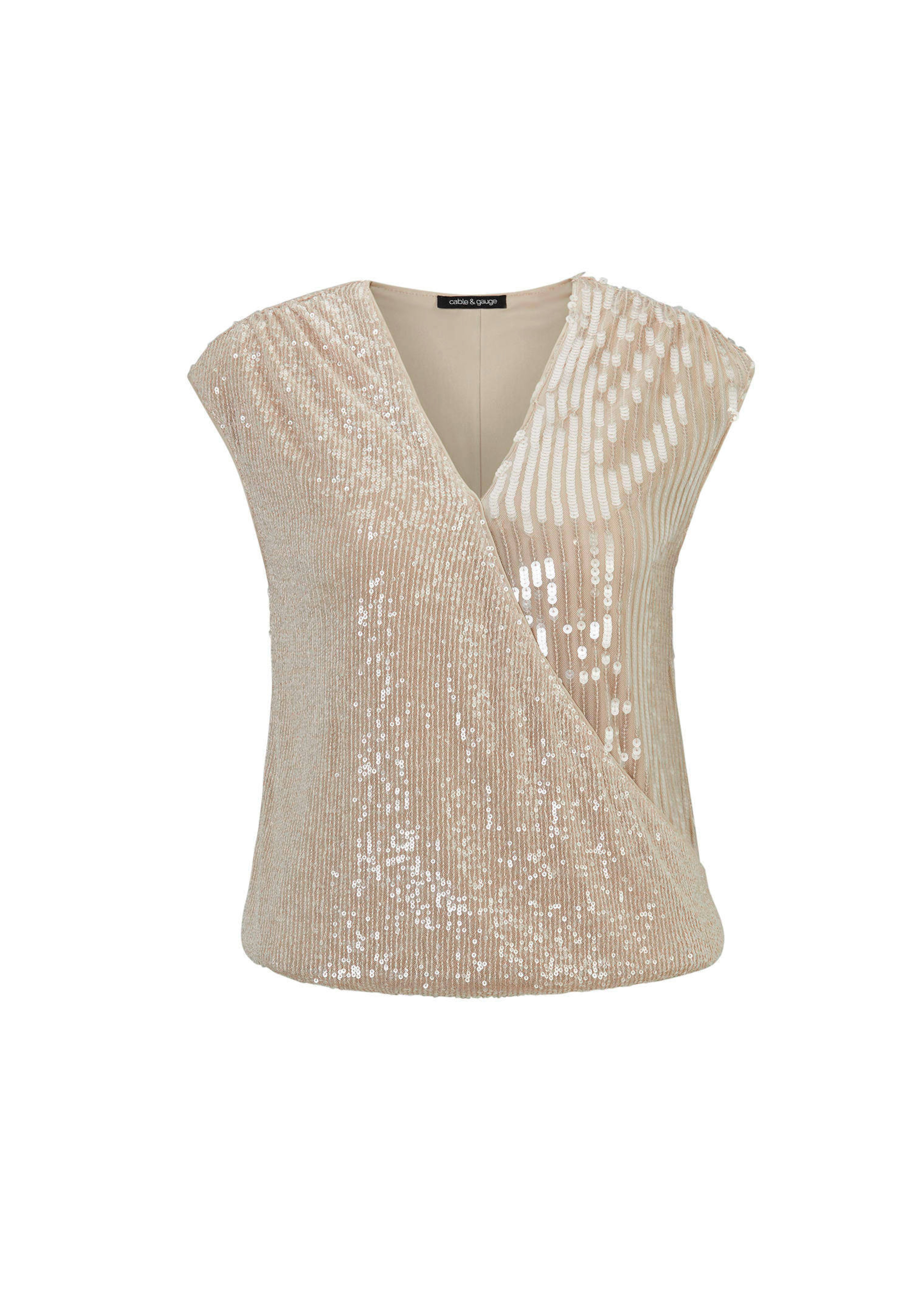 T-shirt élégant, style cache-cœur, orné de paillettes. Le détail qui fait toute la différence ? Les broderies mêlant grandes et petites paillettes. Elles accentuent l'effet drapé sur le devant et créent un élégant look 2-en-1 à l'arrière. Encolure en V résolument féminine et emmanchures tombantes.