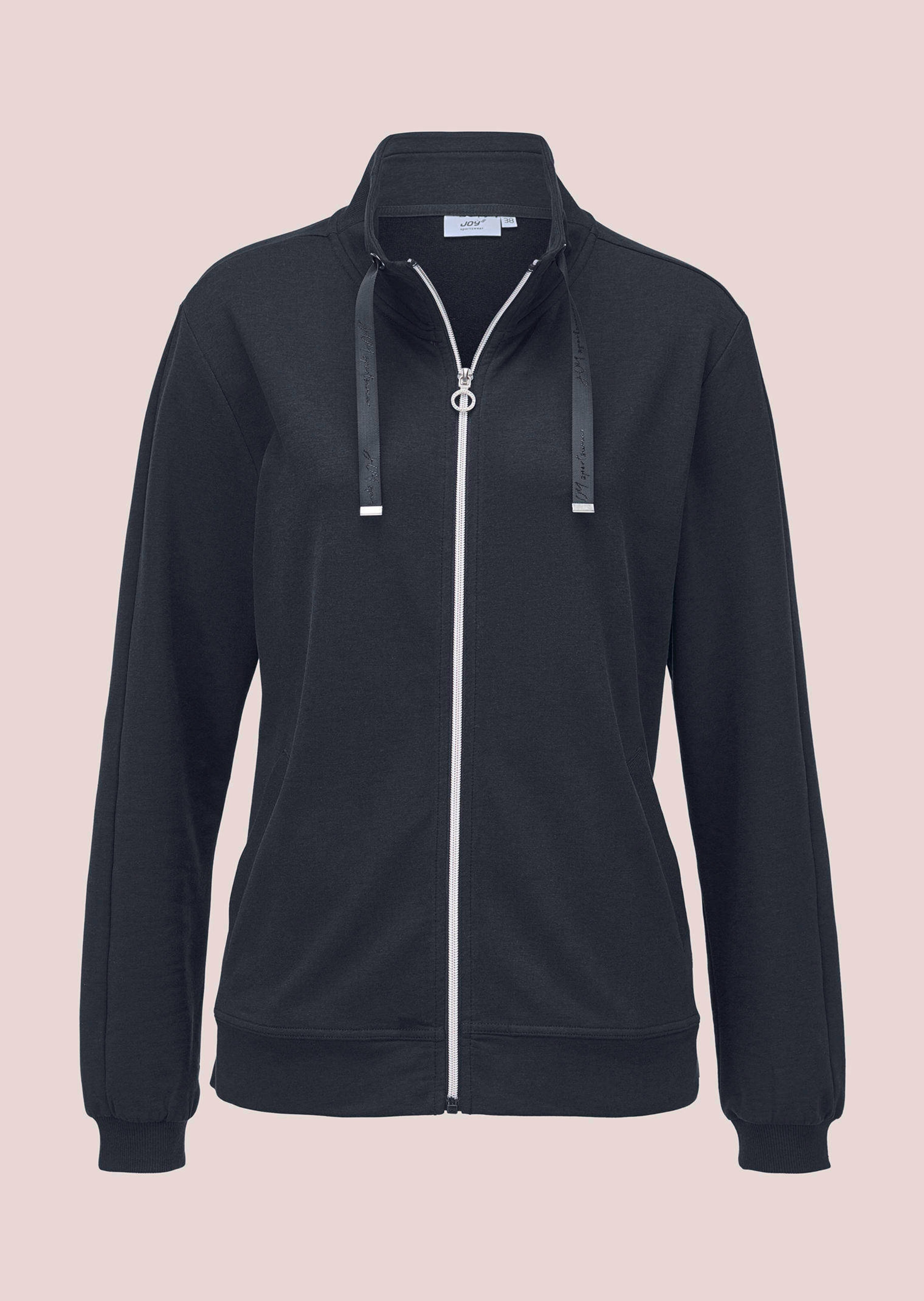 Sobre et stylée: la veste de loisirs JOY en jersey souple haut de gamme coton/Modal. Modèle pratique avec col montant variable et ruban à nouer, zip coloris argenté et poches. Finitions haut de gamme avec découpes sur les manches et base large. Une veste facile à coordonner pour les loisirs et pour tous les jours.