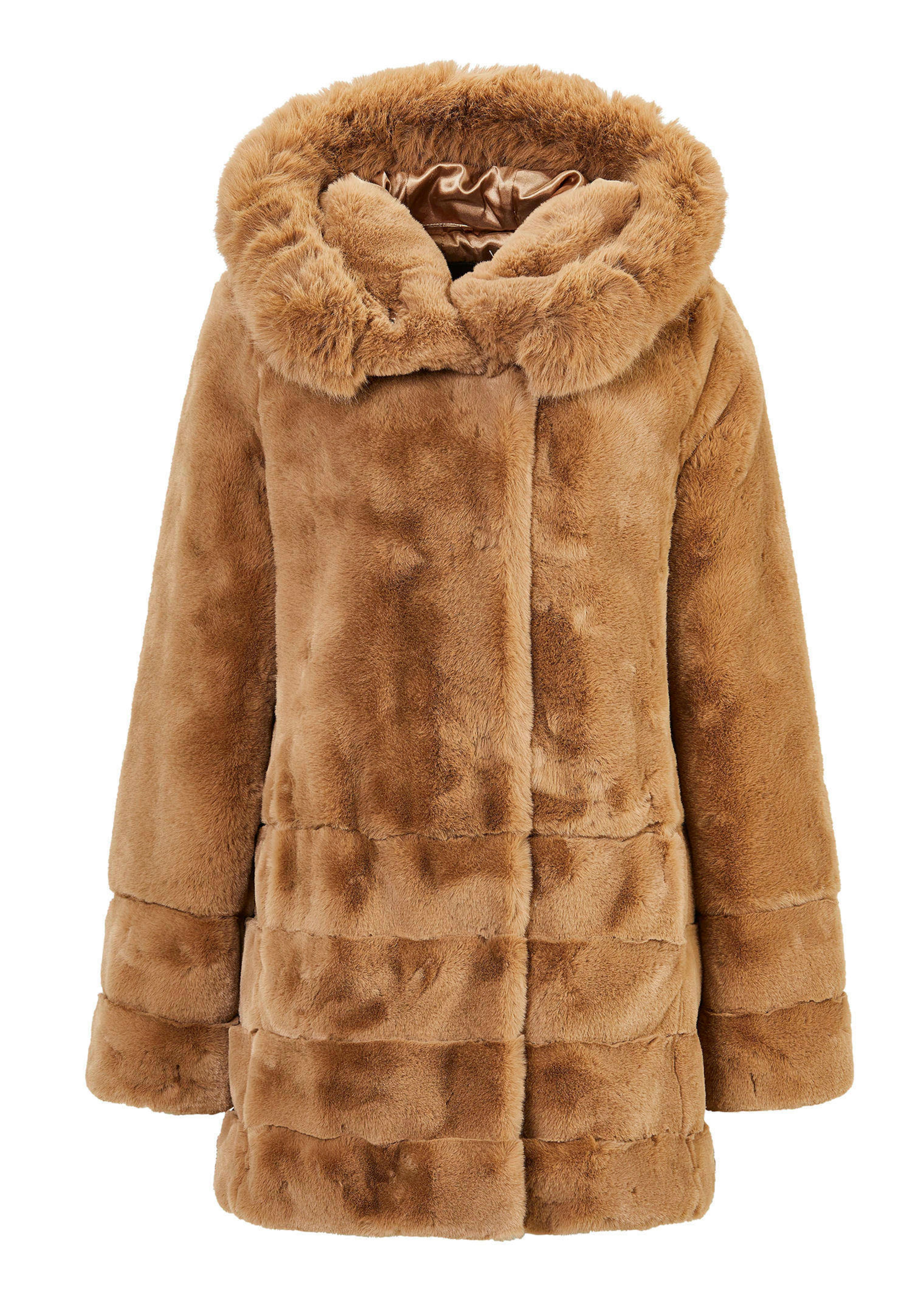 Veste en fausse fourrure douce, à la brillance raffinée. Modèle duveteux, lisse sur le dessus, avec surpiqûres transversales, raffinées, au bas de la veste et aux manches. Boutonnage sous rabat coupe-vent et poches latérales discrètes. Rien ne détourne le regard de l'aspect duveteux moelleux de ce modèle hors pair. Grande capuche bien chaude, qui protège du vent. Coupe ample, facile à combiner, avec des pulls épais ou des hauts volumineux. Taille petit : veuillez commander une taille au-dessus de votre taille habituelle.