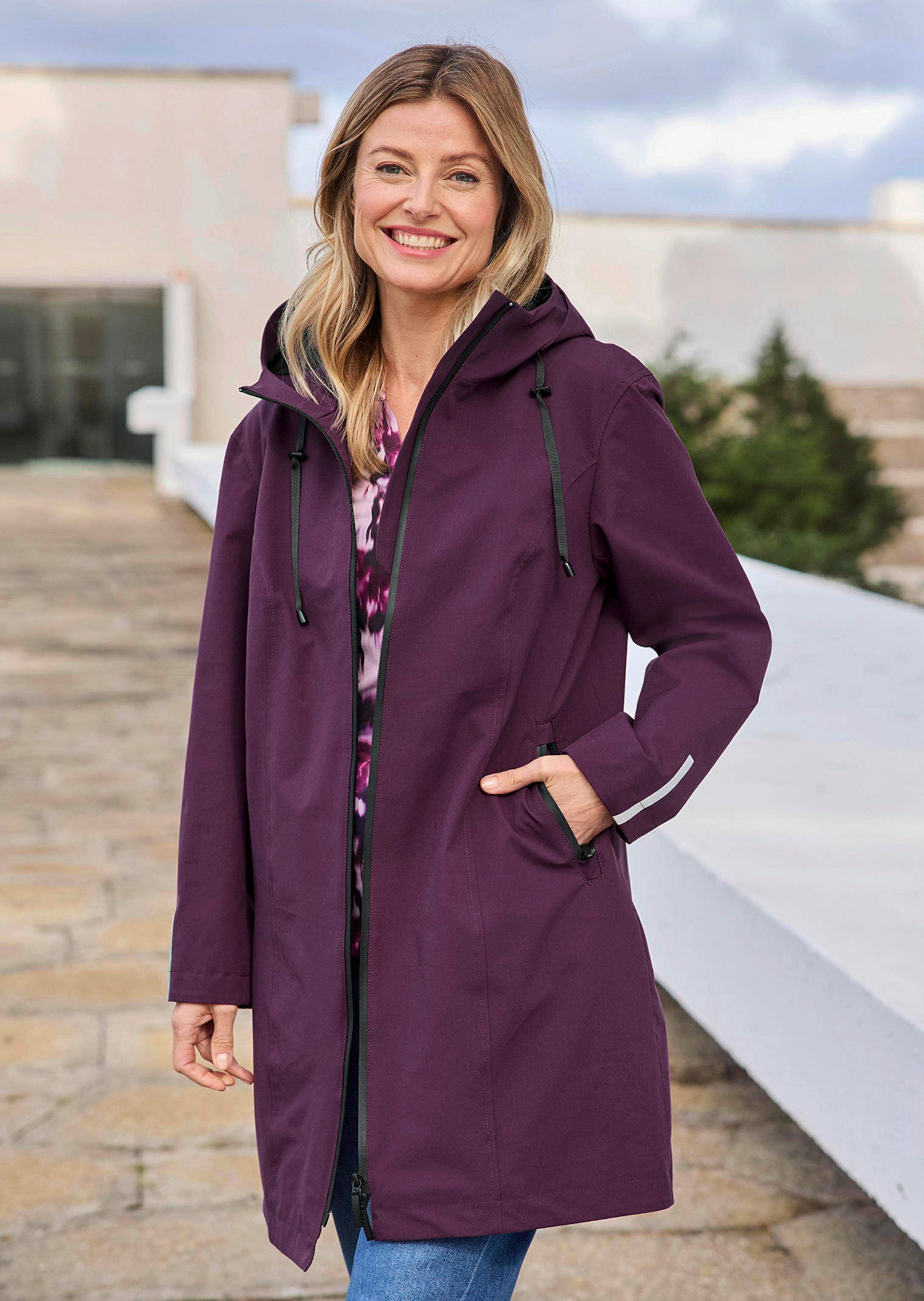 Veste technique confectionnée dans une matière imperméable, conçue pour braver les intempéries ! Avec zips étanches, coupe-vent. Les réflecteurs au dos et aux manches, assurent une sécurité optimale à la tombée de la nuit. Capuche séduisante avec petite visière de protection, réglable par lien de serrage. Coupe longue avec fente au dos, garantissant une liberté de mouvements optimale. Zip double-sens contrastant. Longueur env. 93 cm en 46, env. 89 cm en 23.