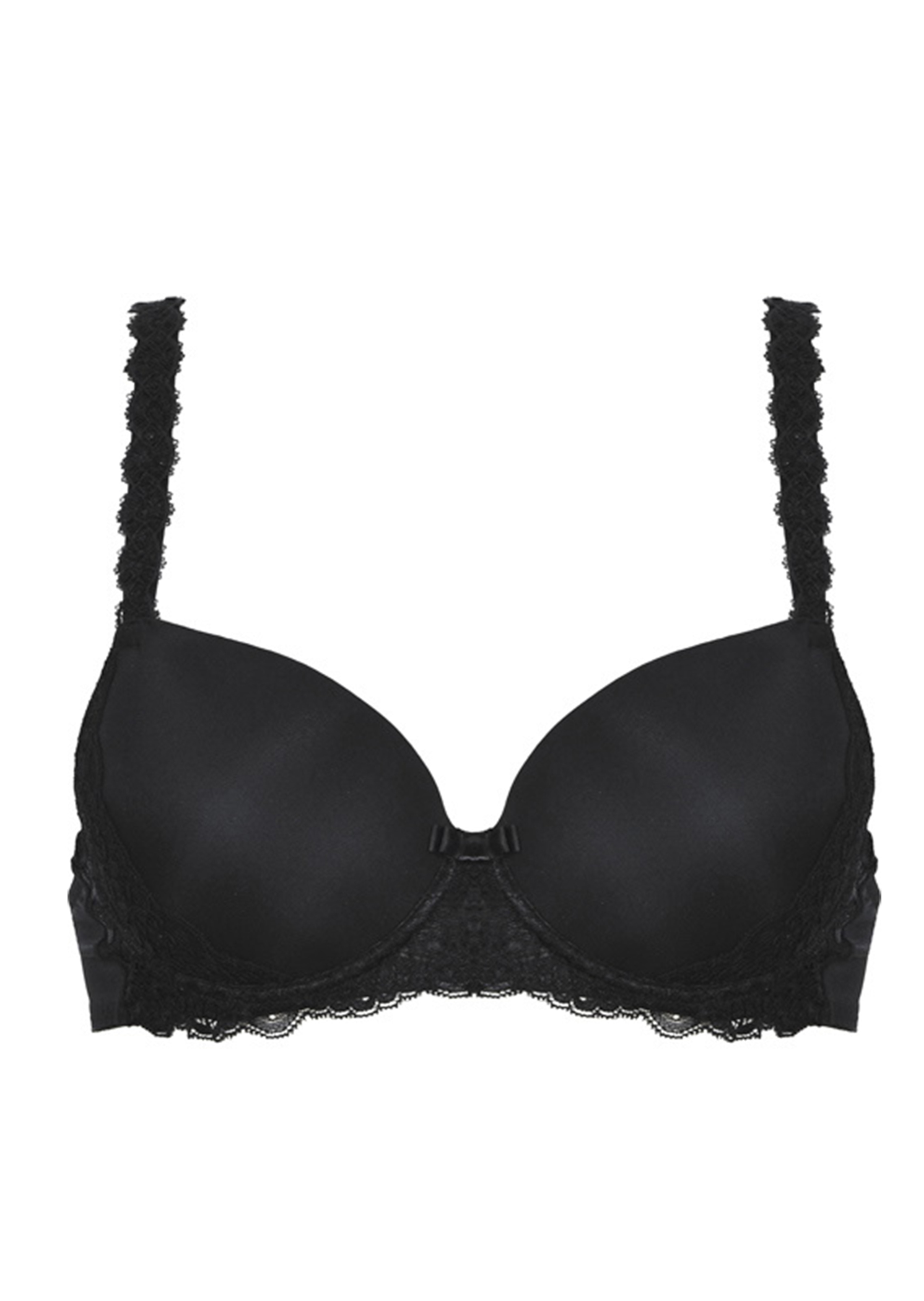 De beugelbeha biedt door de extra zachte steuncups een uitstekende pasvorm, zowel in kleine als grote cups. De schouderbandjes zijn zacht gevoerd en voorzien van een hoogwaardige kanten band met een fijn rankenmotief. Cups met kant opzij. De gebloemde kant ziet er mooi uit door de transparantie. Deze is echter ook sterk genoeg om opzij van de cups en in het middenbandje toereikend steun te bieden. Deze mooie beha wordt afgerond door een ton sur ton satijnen strik.