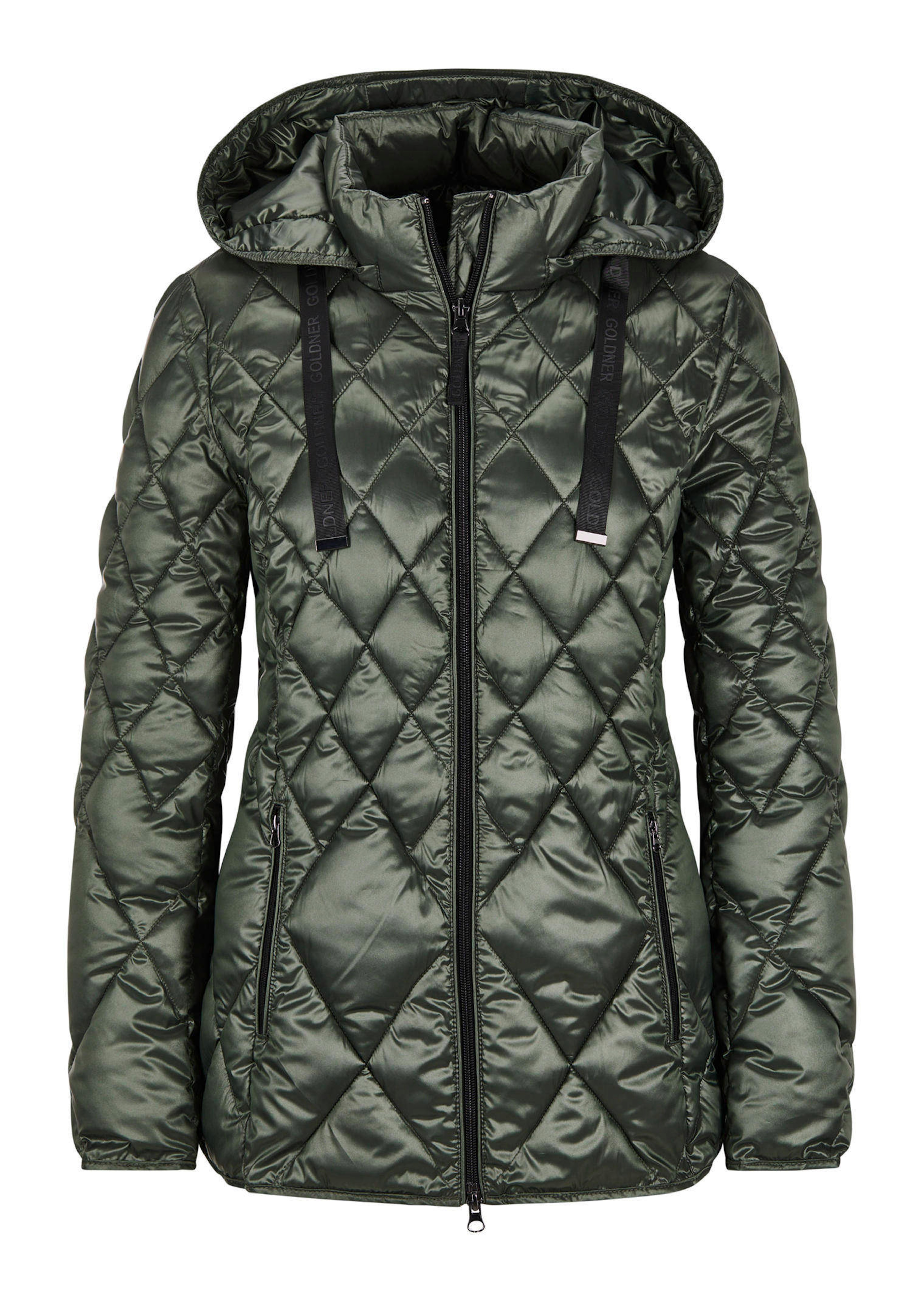 Jack met een aantrekkelijk stikselpatroon: de ruiten worden naar beneden toe groter en zorgen zo voor een aantrekkelijke uitstraling. Het metallic effect benadrukt deze unieke look! Langer, zitvlak bedekkend model. Een praktische 2-wegritssluiting maakt ook het zitten comfortabel. Met een opstaande kraag en capuchon. Contrastkleurige ripsbanden met GOLDNER-opschrift vormen mooie accenten. Twee zakken met ritssluiting ronden dit model af. Lengte ca. 71 cm in maat 46, ca. 67 cm in maat 23.