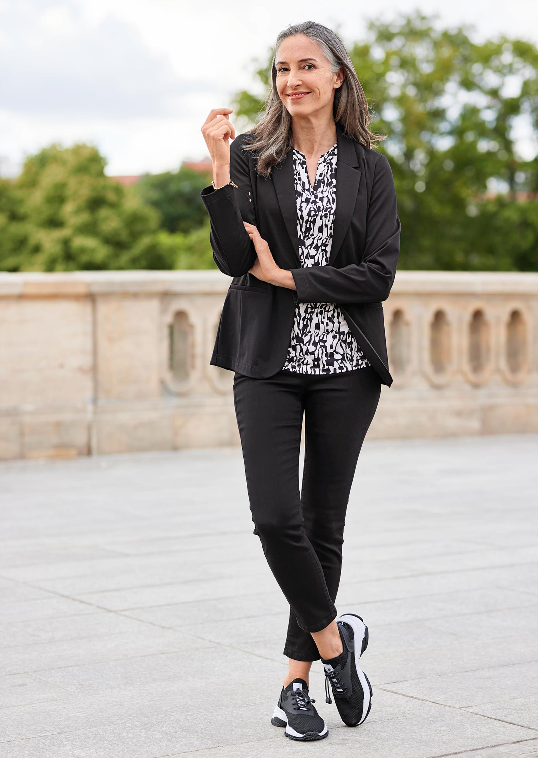 Lichte, ongevoerde blazer van kreukvrij materiaal dat dankzij het hoge aandeel Elastan onbeperkte bewegingsvrijheid biedt. Veelzijdig te combineren en ideaal voor vrijwel elke gelegenheid. De ongecompliceerde allrounder sluit casual met 1 knoop. In de lengte aangebrachte deelnaden zorgen voor een vormgevend silhouet dat u slanker laat lijken. Reverskraag en zakken met paspelering zijn andere mooie details. De hoogwaardige viscosemix biedt veel draagcomfort. Lengte ca. 70 cm in maat 46, ca. 66 cm in maat 23.