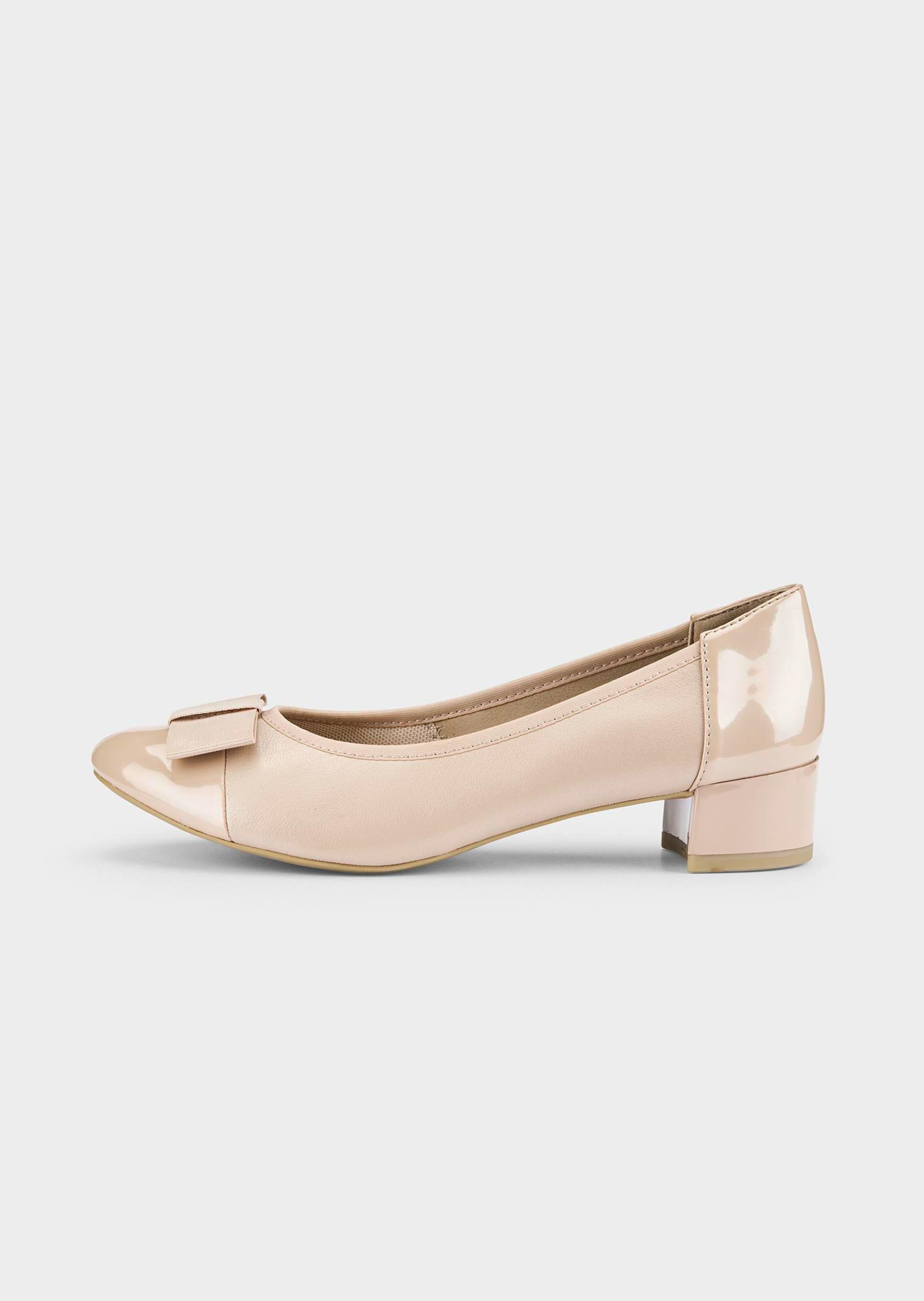 Pumps van CAPRICE in ballerinastijl met elegante sierstrik. De comfortabele breedte G zorgt voor uitstekend draagcomfort, ook urenlang. Flatteuze, iets glanzende mix van leer, textiel en kunststof. Met blokhak: 3,5 cm.