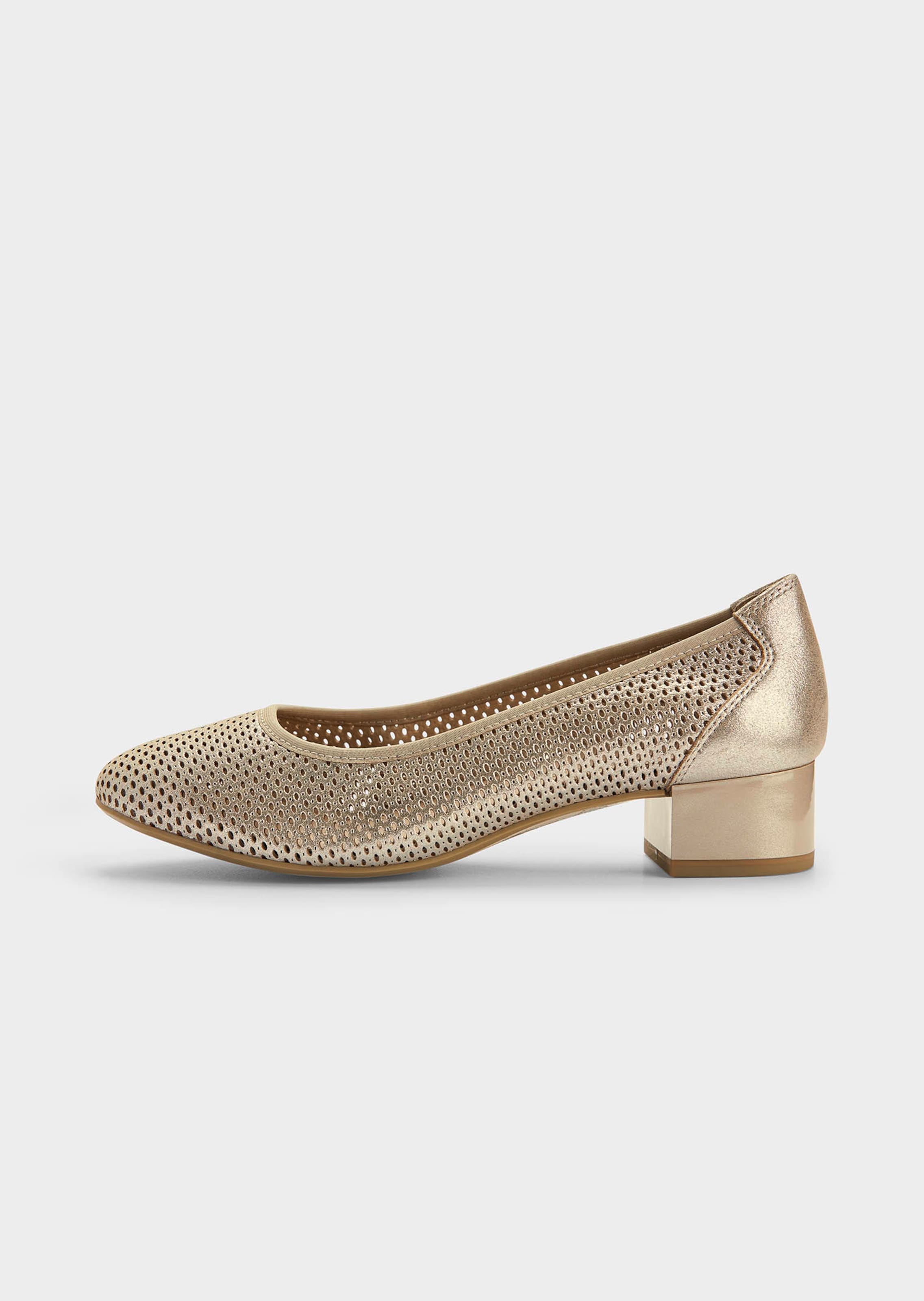 Leren pumps ANUSCHKA van CAPRICE. Een vrouwelijke zomerse schoen met luchtige perforatie. Perfect voor de warmste dagen van het jaar. Met leren binnenzool en flexibele loopzool.