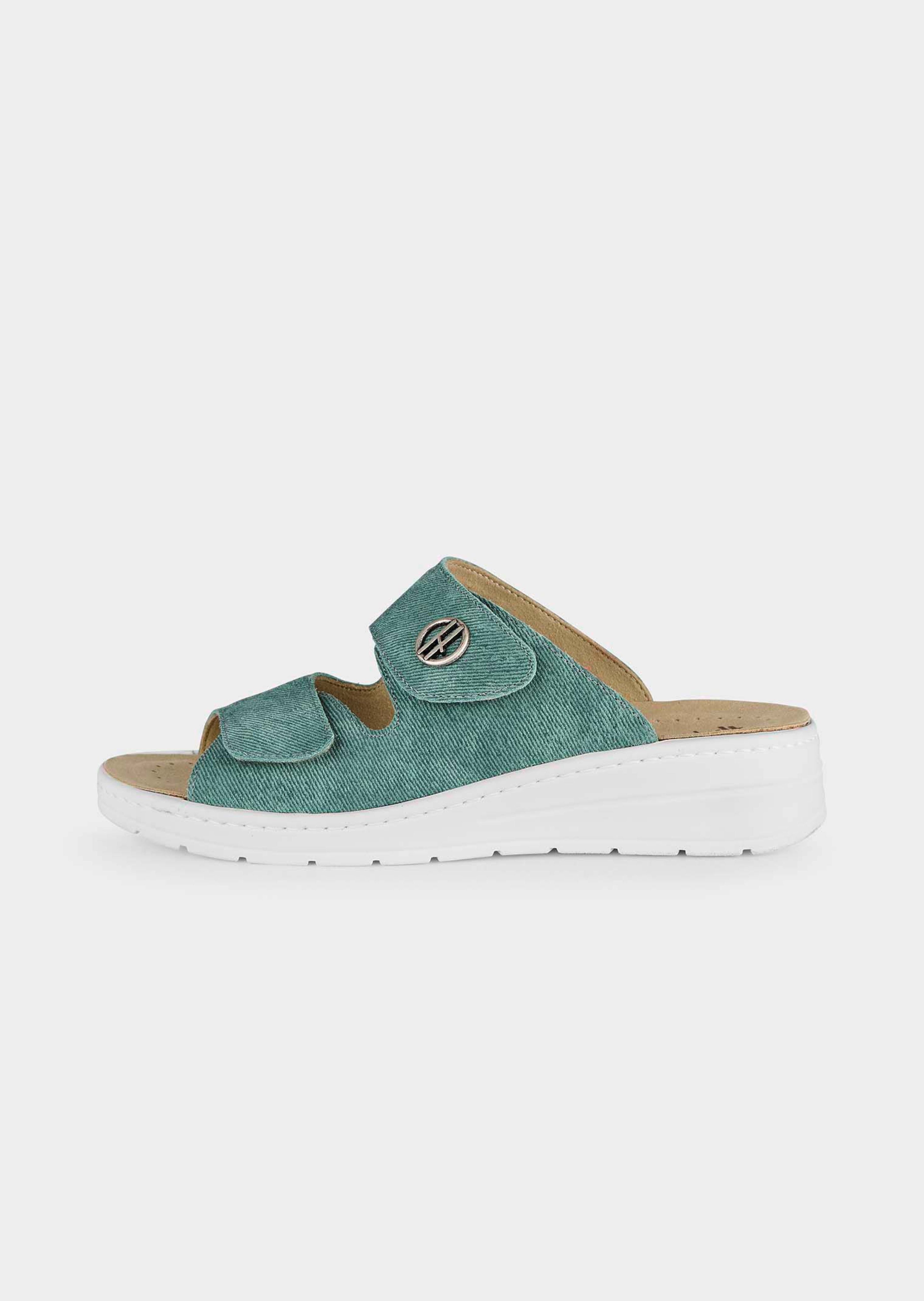 Sandaaltjes van HICKERSBERGER in modieuze jeanslook. Het suède valt zacht en soepel, de textielen voering heeft een antibacteriële werking. Dankzij het verwisselbare voetbed van licht kurk met kruiden-inlay biedt de schoen een aangenaam voetklimaat. Met klittenbandsluiting. Zachte PU-zool met antislip.