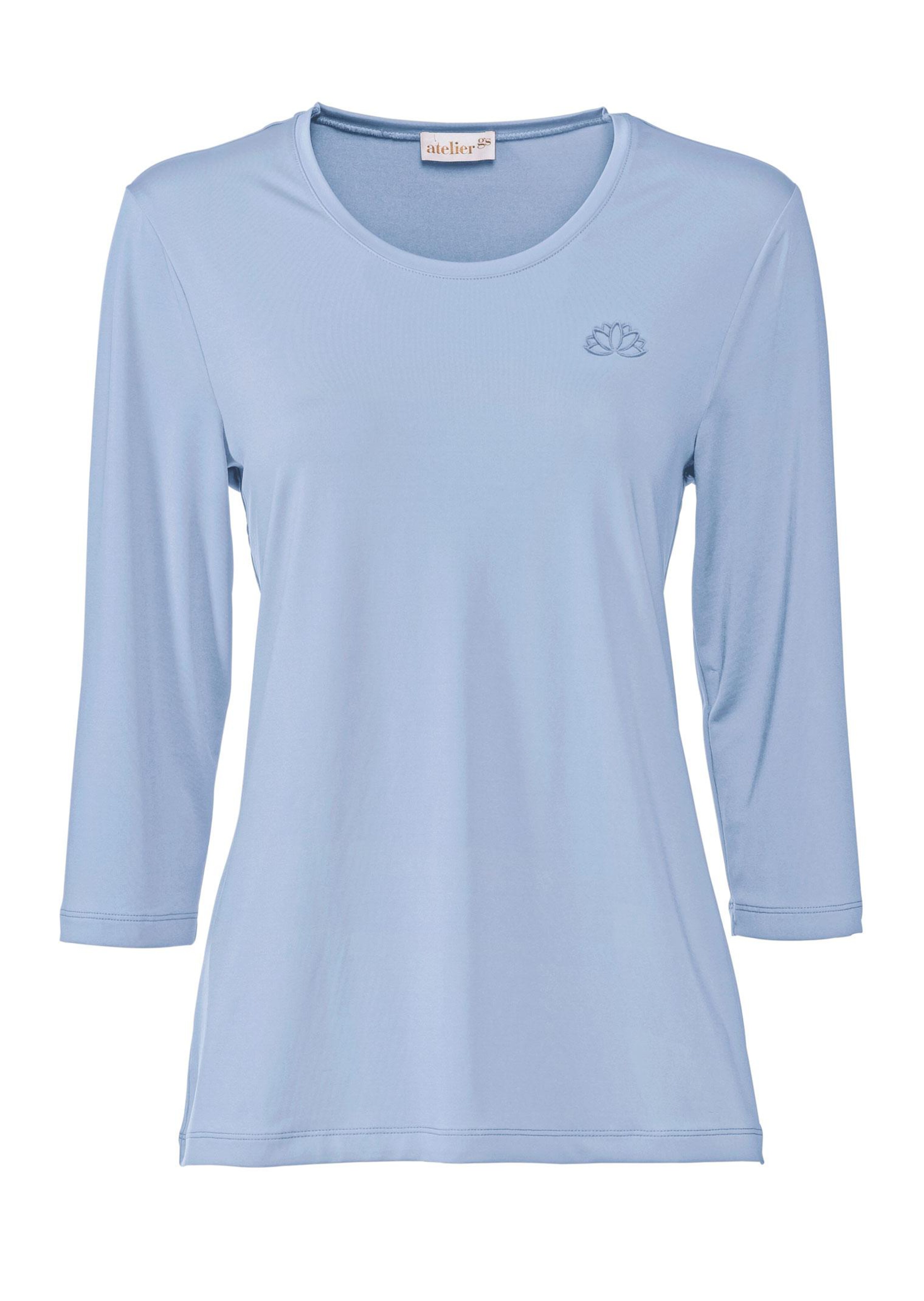Shirt met ovale ronde hals en 3/4-mouwen. Perfect te combineren en met klein lotusbloemenborduursel voor. Sneldrogend en snel te strijken en daardoor heerlijk onderhoudsarm: gewoon wassen, drogen en weer dragen. De lichte, soepelvallende stof is bijzonder aangenaam om te dragen en blijft dankzij het aandeel Elastan mooi in model. Ideaal voor sport en vrije tijd. Lengte ca. 66 cm in maat 46, ca. 62 cm in maat 23.